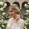 The romantic ethereal beauty of this spray is a feast for heart and eyes; delicate hand painted frangipani blossoms nestle sweetly in a cloud of seed pearl flowers, Marquise cut crystal leaves and silver foliage. A beautiful finishing touch for your perfect day.