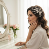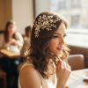 Elevate your elegance with our exquisite freshwater pearl comb, a stunning accessory that seamlessly blends sophistication and artistry. Adorned with gleaming opal crystals and delicately hand-painted silver leaves, this piece is meticulously hand-wired onto a durable silver comb, ensuring both beauty and flexibility in design. Measuring 14cm x 7cm high, it is the perfect size to enhance any hairstyle, making it an ideal choice for weddings, special occasions, or simply to add a touch of luxury to your everyday look. Embrace timeless beauty and make a statement with this enchanting hair accessory.