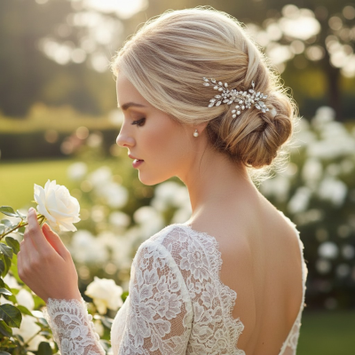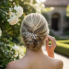 Set upon a sparkly silver finish comb, the design catches the light effortlessly, adding a touch of glamour and sophistication.