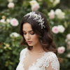 Lush enchantment hair vine. Bring enchantment to your day with this alluring flourish. Crystal embellished leaves, simulated pearls and crystal beads create an intricate finish to bring harmony and sweetness to your look. Details; High quality crystals. silver crystal embellished leaves, simulated ivory pearls . High shine silver finish. Light ivory ribbon included, wear with or without ribbon.