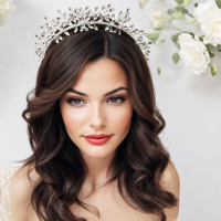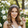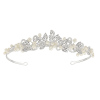 Exquisite tiara - Stunning chic design embellished with clear crystals and simulated ivory pearls on a rhodium plated finish.