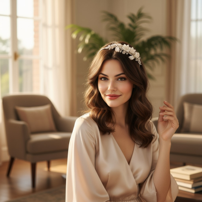 Evoke spellbinding beauty with the ethereal femininity of this breathtaking rose headband. Rich with delicate clay flowers and silver leaves, freshwater pearls and sparkling crystals, this intricate piece is sure to delight. Delicate crystal drops and clay rose flowers evoke the beauty of a fairytale wedding, Embrace the magic of your story with this enchanting headpiece, Details; High quality crystals. Silver leaves, silver finish headband, Freshwater pearls. Dimensions: