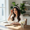 Athena Collection - exquisite floral headband - flexibly designed and embellished with high quality clear crystals and simulated ivory pearls on a high shine silver finish flexible headband. Size is 35cm long x 4cm wide.