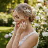 The romantic ethereal beauty of this spray is a feast for heart and eyes; delicate porcelain flowers nestle sweetly in a cloud of Marquise cut crystal leaves. A beautiful finishing touch for your perfect day. Details; • porcelain flowers. • marquise cut crystals• High shine silver finish. • Fitted with a crocodile clip. Dimensions approximately 5.5cm long