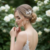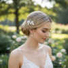 The romantic ethereal beauty of this spray is a feast for heart and eyes; delicate porcelain flowers nestle sweetly in a cloud of Marquise cut crystal leaves. A beautiful finishing touch for your perfect day. Details; • porcelain flowers. • marquise cut crystals• High shine gold finish. • Dimensions approximately 5.5cm long