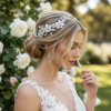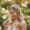Enchant onlookers with the fairytale beauty of this ethereal piece; a bough of ivory hand painted cherry blossoms centred with shimmering pearls and sparkling crystals glow gently amidst a halo of pavé set leaves and crystal drops. Sweet pearl forget-me-nots accent the delicate radiance and add to an aura of captivating femininity. The perfect romantic touch for your magical day.