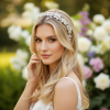 Enchant onlookers with the fairytale beauty of this ethereal piece; a bough of ivory hand painted cherry blossoms centred with shimmering pearls and sparkling crystals glow gently amidst a halo of pavé set leaves and crystal drops. Sweet pearl forget-me-nots accent the delicate radiance and add to an aura of captivating femininity. The perfect romantic touch for your magical day. Details; High quality crystals. Simulated ivory pearls. Hand painted blossoms. High shine silver finish. Dimensions 12cm x 5cm width.