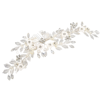 Delicate and eye catching floral romance headpiece - embellished with high quality clear crystals, freshwater pearls and glamorous crystal embellished flowers. Fitted with a crocodile style clip for a perfect fit. Size is 13cm long x 6.5cm wide and the design is flexible.