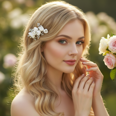 Adorn your locks with the romance of delicate handcrafted porcelain rose buds and the sublime serenity of faceted crystal drops. Breathtaking romantic alchemy to enhance the feminine splendour of your magical look.
