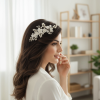Adorn your locks with the romance of delicate handcrafted porcelain flower comb. Breathtaking romantic alchemy to enhance the feminine splendour of your magical look. Details; Handcrafted porcelain flowers and freshwater pearls. Silver finish. Dimensions; 13cm x 5cm length
