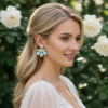 Add a touch of glamour - These earrings are the perfect accessory for any glamorous occasion. The Aqua tones add a glamorous and feminine touch, making these earrings a must-have for any Glam look. With their intricate design and sparkling rhinestone crystals, these earrings exude elegance and splendour. Dimensions: 3cm x 3.5cm on an antique gold finish.