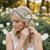 Glamorous rose hair pins - Featuring two clay roses in light ivory - hand wired onto a gold vine hair pin. Embellished with simulated ivory pearls and crystals. Pin size is approx 5cm long