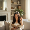 Bring enchantment to your day with this alluring flourish. A bed of delicate hand painted porcelain flowers are cocooned amongst a lush variety of crystal embellished flowers, simulated pearls and crystals. An intricate finish to bring harmony and sweetness to your look. Details; High quality crystals. Hand painted porcelain flowers, simulated ivory pearls. High shine silver finish.
