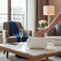 Elevate your evening ensemble with our Glitzy Glam Crystal Clutch Bag, a stunning accessory that combines elegance and sophistication. Adorned with clear crystals on luxurious black satin fabric, this clutch exudes a timeless charm, enhanced by its vintage-inspired clasp. Measuring 21cm x 11cm with a depth of 4.5cm, it offers just the right amount of space for your essentials while making a bold fashion statement. Perfect for weddings, parties, or any special occasion, this clutch is a must-have for those who appreciate the finer things in life.