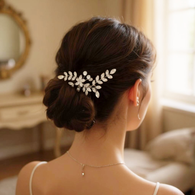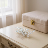 This exquisite haircomb is a must-have accessory for brides and bridesmaids. Elevate your bridal style with a touch of glamorous sparkle that will make you feel like a true queen on your wedding day