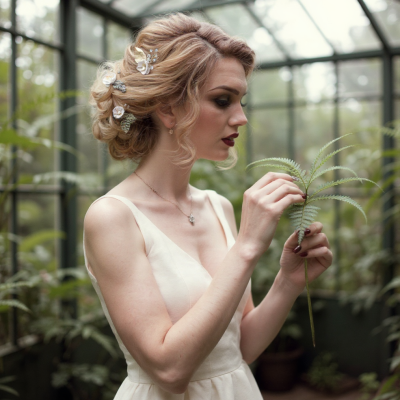 Like magical fairy dust, sprinkle these enchanting confections through your hair. Delicate blush pink roses bloom to reveal crystal dappled centres. These sweet pieces are perfectly enhanced with sprigs of crystal drops, shimmering seed pearls and a variation of silver, satin, hand painted and pavé set filigree leaves. The perfect finishing touches bringing kisses of gilded warmth, opulent romance and radiant sparkle to your fairy tale come true.