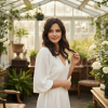 - Blush pink floral accents.