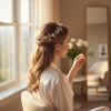 Be a goddess of enchantment with this ethereal bohemian hair vine. The magical lyricism of this piece is created with delicate blush pink crystal accented blossoms and silver filigree hand painted leaves. Breathtaking brilliant cut and Marquise cut crystals bring fire and radiance set in rich filigree silver. Gilded twine accented with crystal drops completes the magic. Bring the elegance of this spellbinding piece to your special day and create your own mythical fairytale. Details; High quality crystals. High shine silver finish. Blush pink floral accents. Hand painted leaves. Finished with loops at either end for styling. Dimensions 40cm x 2cm.