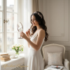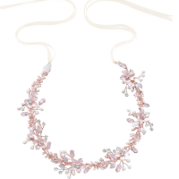 Evoke spellbinding beauty with the ethereal femininity of this breathtaking vine. Rich with delicate hand painted leaves, simulated pearls and sparkling crystals, this intricate piece is sure to delight. Delicate crystal drops and hand painted pink blush flowers evoke the beauty of a fairytale wedding, Embrace the magic of your story with this enchanting headpiece, fit for a princess on her special day. Details; High quality crystals. Hand painted pink blush leaves, Rose gold vine, Simulated pearls. Complete with ivory satin ribbon. Dimensions, 32cm.