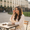 Bring a kiss of radiance to your day of wonder with this enchanting vine. Embellished with clay flowers, marquise cut crystals and seeded pearls on a silver vine, complete with a flawless ivory satin ribbon for perfect styling.