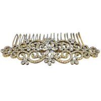 Chic and stylish feather headband - embellished with clear crystals on a sparkly gold headband. Size of feather embellishment is approx 7cm long