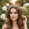 Bring a golden kiss of crystal radiance to your day of wonder with this enchanting vine. Glowing crystals luminesce amongst Metallic gold leaves. The intensely set crystal work is offset beautifully by a warm golden vine evoking harmony between earthly gold tones and astral silver hues. Perfect for celebrating a match made in heaven. Details; High quality clear crystals. antique gold finish. Dimensions: 34cm x 7cm on a flexible vine.