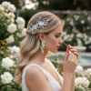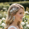 Bring magic to your look with this enchanting porcelain flower beauty set complete with matching earrings. Delicate frangipani blooms hold court surrounded by cascading Marquise cut crystal leaves and seed pearls. The perfect romantic flourish for your perfect day. Details; * High Quality silver plated finish • Hand painted porcelain flowers. • High quality crystals. • Simulated pearls. • Hand wired and flexible for styling. • Dimensions 14cm x 4cm. Fitted with a crocodile clip. Earring size is approx 3.5cm long