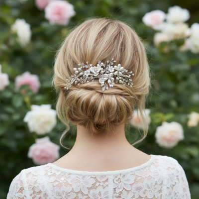 Luxe hair comb - Truly stunning hair comb - stunning embellished with freshwater pearls, clear crystalsand clay flowers. approx size is 14cm long on a silver finish comb