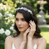 Bring enchantment to your day with this alluring flourish. A bed of delicate hand painted porcelain flowers are cocooned by a cloud of silver plated leaves, clear cut crystals and crystal drops. An intricate finish to bring harmony and sweetness to your look. Details; High quality crystals. Hand painted porcelain flowers. High shine silver finish. Dimensions of embellishment os 34cm x 3cm wide.