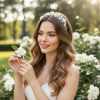 Let the sumptuous silver of this gleaming piece crown your beautiful day. Decadent silver vine leaves are highlighted by decadent clay flowers and simulated ivory pearls will enchant onlookers and bring an ethereal aura to your magical day. Details; High quality clay flowers, simulated pearls. High shine silver finish. Dimensions; approx 20cm long
