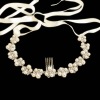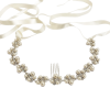 Luxe pearl hair vine fitted with a mini comb and embellished with simulated ivory pearls and clear crystals on a silver finish. Satin ribbon included to be worn with or without. RRP £155