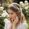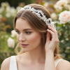 Vintage inspired hair vine - Create authentic red carpet drama on your special day with the exquisite aesthetic of these show-stopping Hair vine . Flawless hand painted silver vine leaves and simulated ivory pearls Details; High quality simulated ivory pearls. High shine silver finish. Complete with ivory ribbon