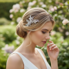 Exquisite pair of vintage inspired hair combs embellished with ivory pearls and hand painted silver flowers on a silver finish. Size is 7cm x 7cm.