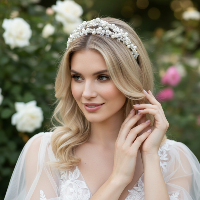 Pretty Chic Double Row Pearl & Bead Headband Elevate your hairstyle with this effortlessly chic double row headband, beautifully embellished with simulated ivory pearls and clear beads. Set on a sleek silver-finish band, this delicate piece adds a touch of elegance and sparkle to any look. Design: Double row with pearl and bead embellishments Finish: Silver tone Embellishments: Simulated ivory pearls & clear beads Style: Feminine, graceful, and versatile Perfect for weddings, parties, or adding a refined touch to everyday ensembles.