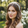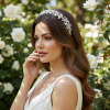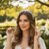 Set on a flexible silver headband, it ensures a comfortable and secure fit for a variety of hairstyles, from flowing waves to classic updos. Perfect for brides, bridesmaids, or special occasions, this exquisite accessory adds a refined and luminous finishing touch to any look.