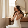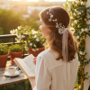Athena collection - pearlie hair vine - embellished with simulated ivory pearls on a white ribbon.