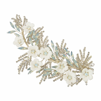 Bring enchantment to your day with this alluring flourish. A bed of exquisite hand wired simulated ivory pearls and marquise cut clear crystals on a gold finish. An intricate finish to bring harmony and sweetness to your look. Fitted with a crocodile clip at the back. Details; High quality clear crystals, simulated ivory pearls. High shine gold finish.