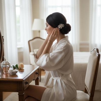The sublime beauty of four flawless glowing pearls surrounded by a nebula of intensely sparkling crystals brings authentic glamour and intense femininity to your look. A sublimely rendered showstopper, this echo of goddess-like beauty will help captivate hearts on your special day.