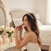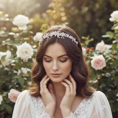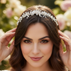 Adorn yourself with this sweetly lyrical band of crystal magic. Generous pavé set flowers radiate light and fire accented by sprays of shimmering crystals and pavé set leaves. A sublime sparkling halo to help you shine on your perfect day. Details; High quality crystals. High shine silver finish. Dimensions approx 2.5cm wide