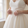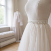 Shimmering crystal bridal belt - embellished with clear round cut crystals and clear sparkly beads on a light ivory ribbon. Free size