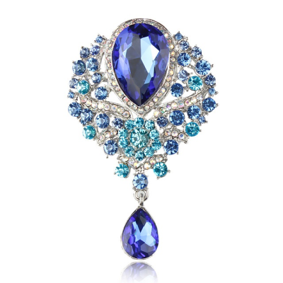Shimmering crystal starlet brooch in a vintage inspired design - embellished with aqua and cobalt blue crystals on a sparkly silver finish. Size is 8.5cm x 5.5cm wide.