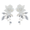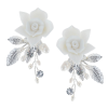 Timeless elegance earrings - Decadent clay flowers, silver vintage leaves and freshwater pearls will enchant onlookers and bring an ethereal aura to your magical day. Details; High quality clay flowers, freshwater pearls. High shine silver finish. Dimensions; 5cm x 2.5cm