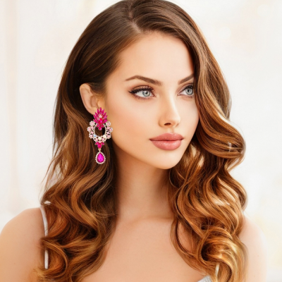 ATHENA COLLECTION- STARLET GLAM EARRINGS - HOT PINK - CZER838