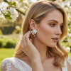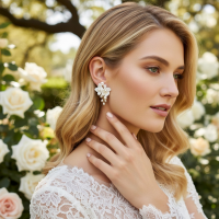 Timeless elegance earrings - Decadent clay flowers and freshwater pearls will enchant onlookers and bring an ethereal aura to your magical day. Details; High quality clay flowers, freshwater pearls. High shine gold finish. Dimensions; 3.5cm x 4cm