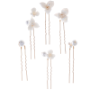 Bring harmony and sweetness to your look with this alluring flourish hair pin set. Comprises a set six hair pins. Embellished with clay flowers and simulated ivory pearls on a gold finish. Details; 8cm high.
