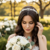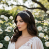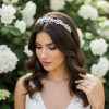 Set on a polished silver finish headband, the design offers a luminous and sophisticated appeal. Measuring approximately 3 cm in width, it provides a graceful presence within the hairstyle while maintaining a delicate, feminine silhouette. An exquisite finishing touch for brides, bridesmaids, or any elegant celebration.