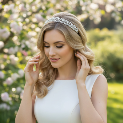 Elevate your bridal look with our Vintage Inspired Pearl Headband, a stunning accessory that beautifully combines classic elegance with modern charm. This exquisite headband features a delicate arrangement of simulated ivory pearls, each meticulously placed to create a timeless aesthetic. The antique silver finish adds a touch of vintage allure, while the clear crystals catch the light, providing a subtle sparkle that enhances your overall ensemble. Measuring approximately 2.5cm in width, this headband is designed to fit comfortably and securely, making it an ideal choice for brides and bridesmaids alike. Whether you're walking down the aisle or dancing the night away, this headband will ensure you shine on your special day.