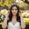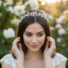 Bring enchantment to your day with this alluring flourish. A bed of delicate crystal embellished flowers are cocooned by a cloud of hand painted leaves, clear cut crystals and crystal drops. An intricate finish to bring harmony and sweetness to your look. Details; High quality crystals. Hand painted leaves, crystal embellished flowers. High shine silver finish.