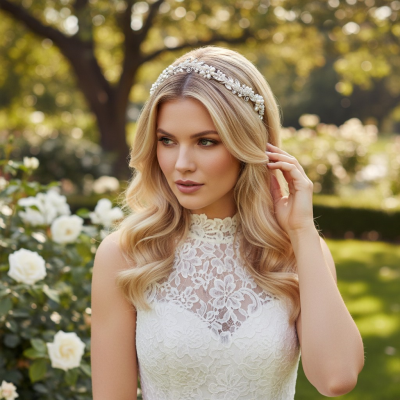 The ethereal magic of this bewitching piece will bring the perfect touch of romantic bohemia to your look. Freshwater pearl flowers centred with crystals and Marquise cut crystal leaves glow and blaze in perfect unison. The sweet harmony of shimmering pearls and sparkling crystals creates a lyrical romance that will provide a flawless finishing flourish for your blissfully enchanting day.