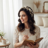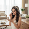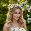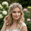 Bring magic to your look with this enchanting porcelain flower beauty. Delicate frangipani blooms hold court surrounded by cascading Marquise cut crystal leaves and freshwater pearls. The perfect romantic flourish for your perfect day. Details; * High Quality 14K Gold plated finish • Hand painted porcelain flowers. • High quality crystals. • Freshwater pearls. • Hand wired and flexible for styling. • Dimensions 20cm x 7cm.